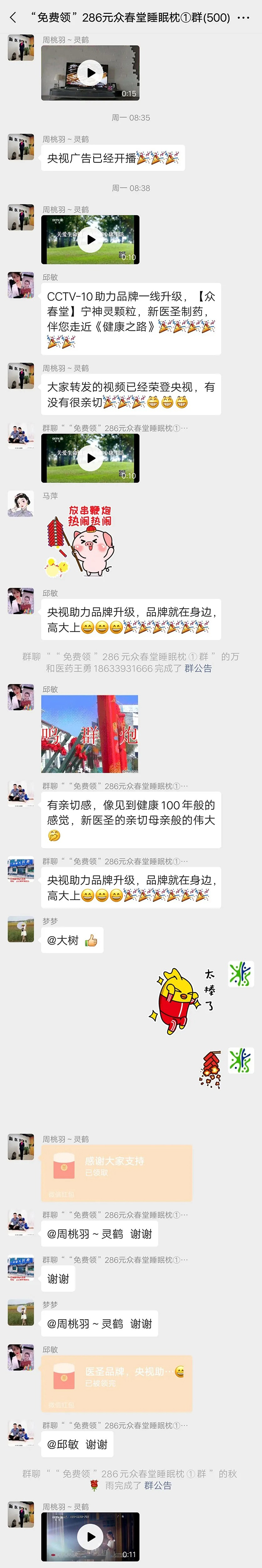 他们朋友圈发了个众春堂宁神灵的15秒小视频